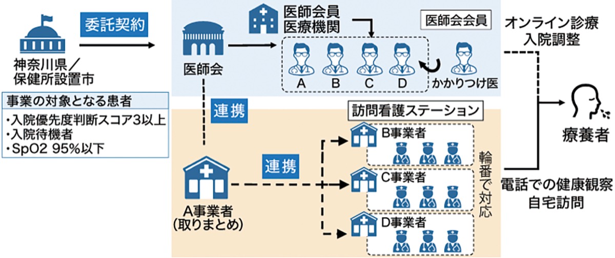 逗葉医師会が神奈川県からの委託を受け、「地域療養の神奈川モデル」事業を実施する。新型コロナに感染した自宅療養者のうち、悪化するリスクがある人を24時間サポートする体制を構築し、運用する。