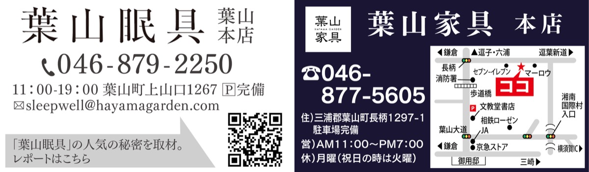 葉山家具は無垢材を生かした温もりある質感と、使いやすさを含めた機能美が人気。葉山眠具は、体にも心にも優しい天然素材のベッドやマットレス、パジャマなど幅広いラインナップを揃えている。この機会に本物の良さを確かめてみては。