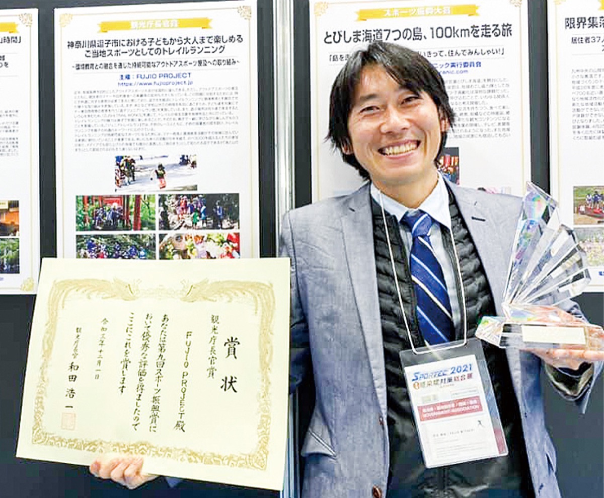 山道を走る「トレイルラン」を通じて子どもたちの成長や環境整備などに取り組むFUJIO PROJECT(宮地藤雄代表)が、第9回スポーツ振興賞で「観光庁長官賞」を受賞した=写真(提供)。スポーツを通じてツーリズムや産業振興、地域振興(まちづくり)に貢献している団体・グループ・企業の活動を顕彰するもので、逗子市神武寺での「ジュニアトレイルラン」など、環境教育との融合を通じた持続可能なアウトドアスポーツ普及への取り組みが評価された。宮地さんは「地元の沢山の方たちが携わってくれたからこその受賞。トレランを楽しみながら、社会課題の解決に取り組んでいきたい」と喜びを語った。