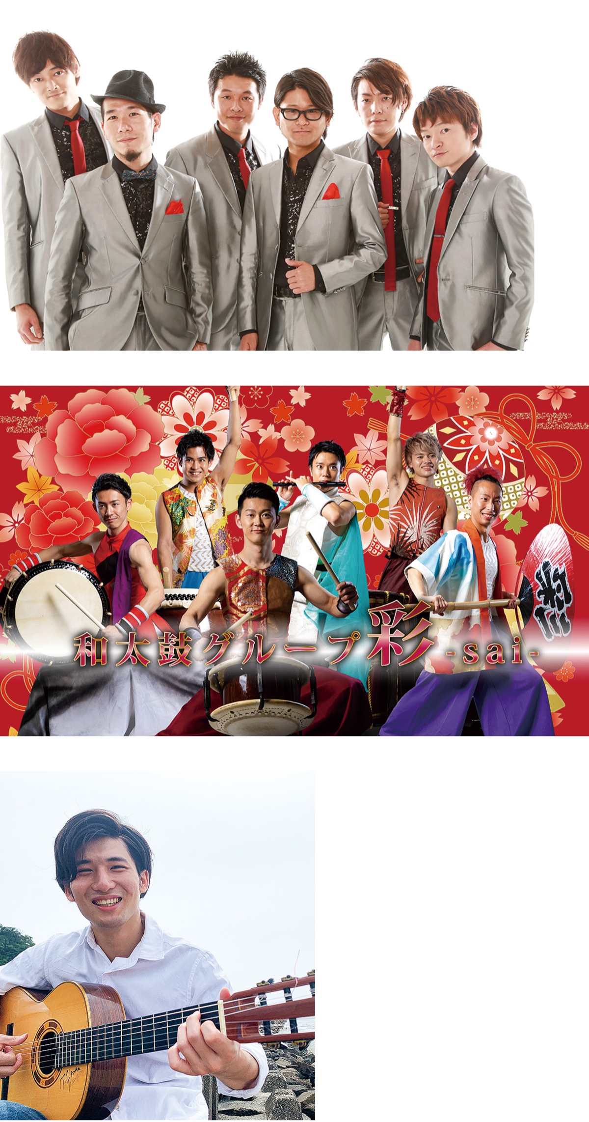 逗子市在住の杉田篤史さん=人物風土記で紹介=がリーダーを務めるアカペラグループ「INSPi」と、逗子開成の和太鼓部との共演でも知られる和太鼓グループ彩―sai―、逗子市出身・在住のフラメンコギタリスト・東川翼さんが出演する。逗子という街をきっかけに繋がった3組が、異色のコラボで唯一無二の音楽を届ける。また、音楽ワークショップも実施するという。