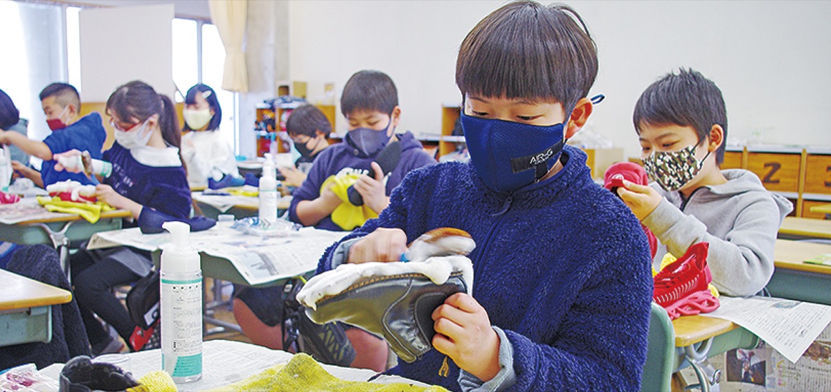 子どもたちに「靴磨き」を通じて、モノの大切さや他者を思いやる気持ちを育んでもらおうと1月27日、逗子小学校で特別授業が行われた。