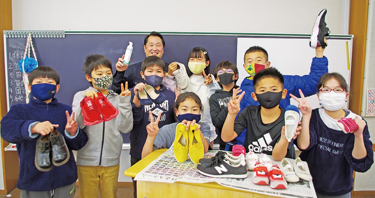 今回の授業では、同店で扱うフランスのシューケアブランドが趣旨に賛同し、クリーナーを提供。市内外から寄せられた靴のほか、児童たちの自宅の下駄箱に眠る靴を持参してもらった。「自分がもらって嬉しくなるくらいキレイにしよう」と渡辺さんが呼び掛けると、児童たちは真剣な様子で作業に没頭。新品のようによみがえった靴を前に笑顔を見せていた。後日、児童養護施設へ直接届けるという。