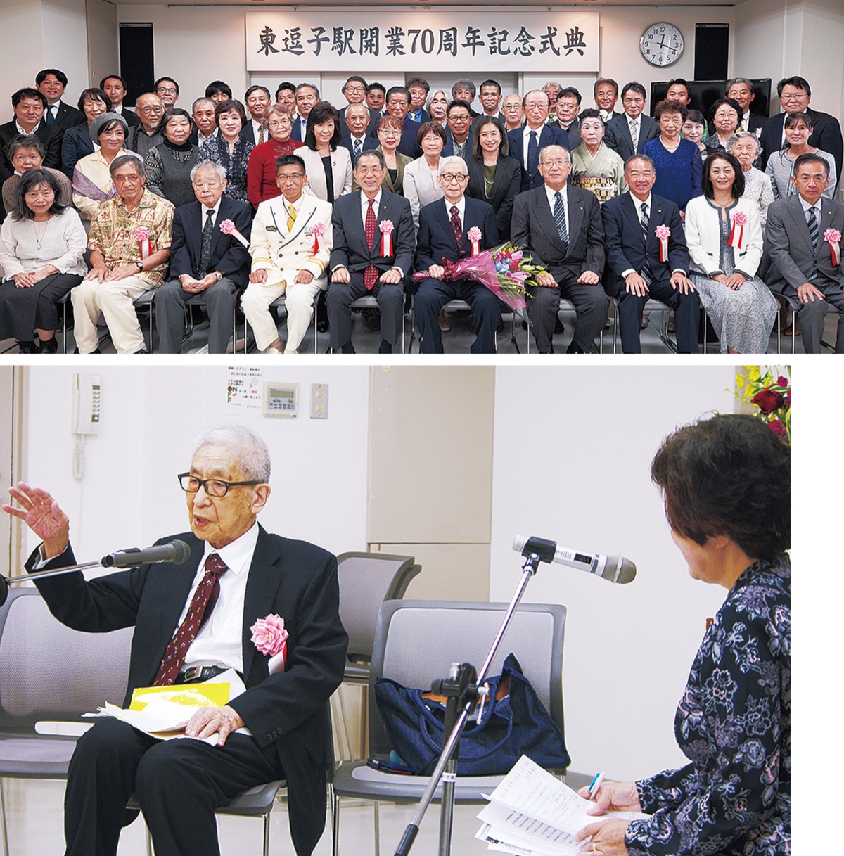東逗子駅開業70周年記念式典が10月16日、逗子市商工会館で行われた。記念講演では、請願運動の中心を担った三田村鳳治さん(100)が登壇。まちづくりのために仲間と奔走した日々を振り返り、「これからの東逗子を盛り上げて」と次世代へエールを送った。