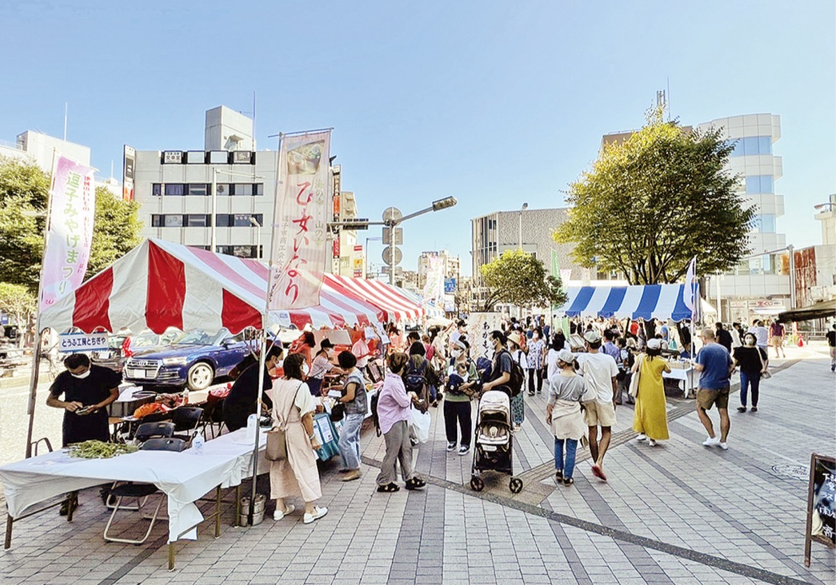 逗子マクドナルド前広場は「みやげまつり」会場。年輪が細かく手になじみやすいさくら材を使用した「さくら包丁」、ワカメやヒジキの仲間のアカモクを使った商品など地域特産の逗子土産が約20店出店。