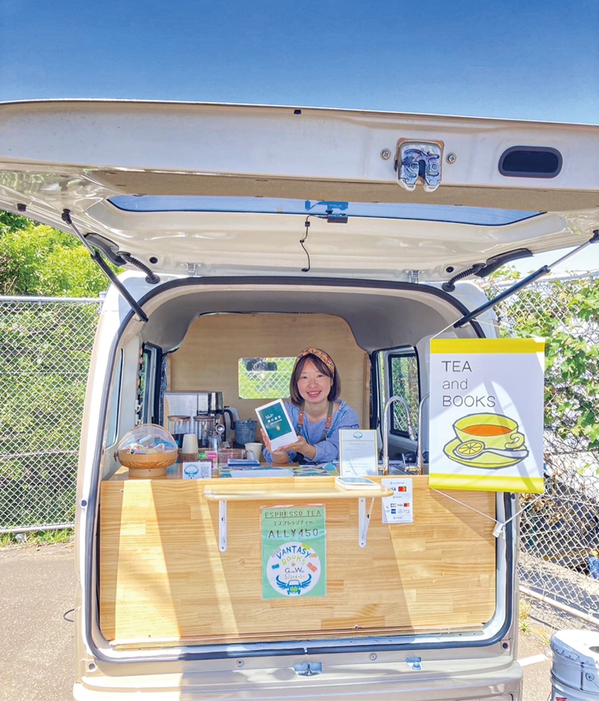 移動式本屋「Vantasy Books」は軽自動車のバンを改造したキッチンカー。Vantasyはバンでファンタジーを届けるという意味の造語だ。本の販売と同時にこだわりの紅茶も提供する。現在、車の形状にあわせた本棚を制作中で完成後に開店する。