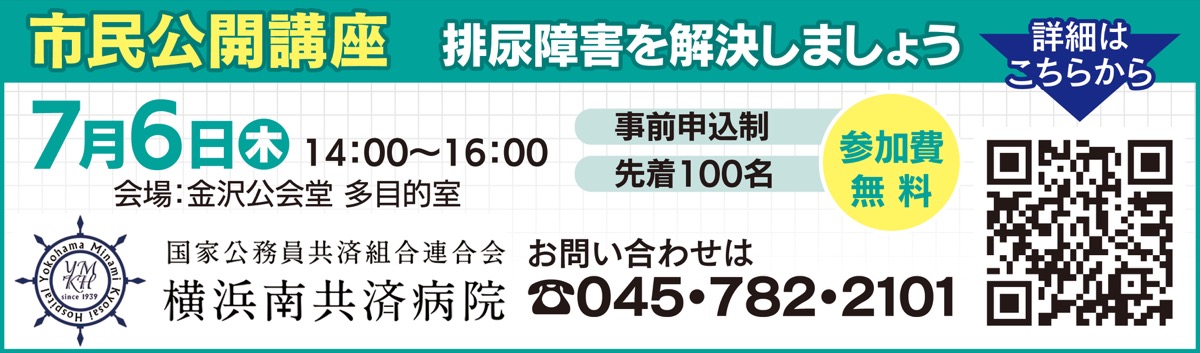 横浜南共済病院は7月6日(木)、市民公開講座「排尿障害を解決しましょう」を開催する。会場は金沢公会堂多目的室。時間は午後2時から4時。事前申込制、先着100人。
