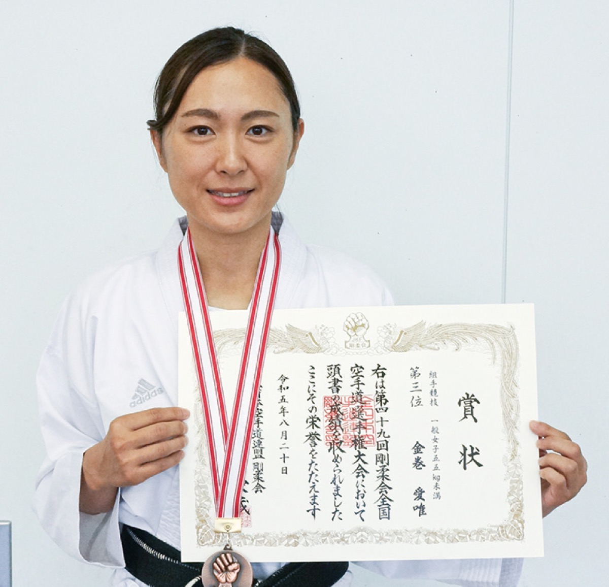 また、一般の部では金巻愛唯さん(39)が8月19、20日に大阪で行われた、全日本空手道連盟剛柔会の全国空手道選手権大会で一般女子55kg未満の組手で3位入賞を果たした。