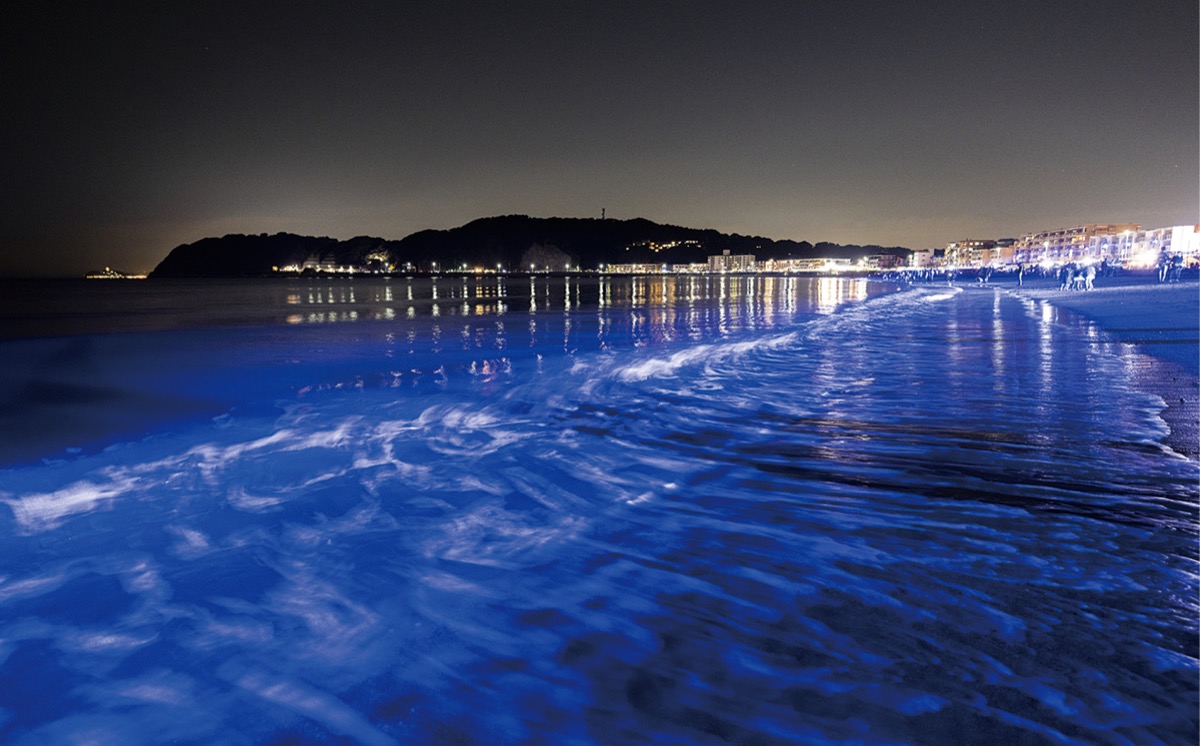 ホロライトとよばれる照明装置で海を照らし、波が青白く発光しているように演出する「NIGHT WAVE〜光の波プロジェクト〜」が、10月7日(土)・8日(日)、逗子海岸で行われる。