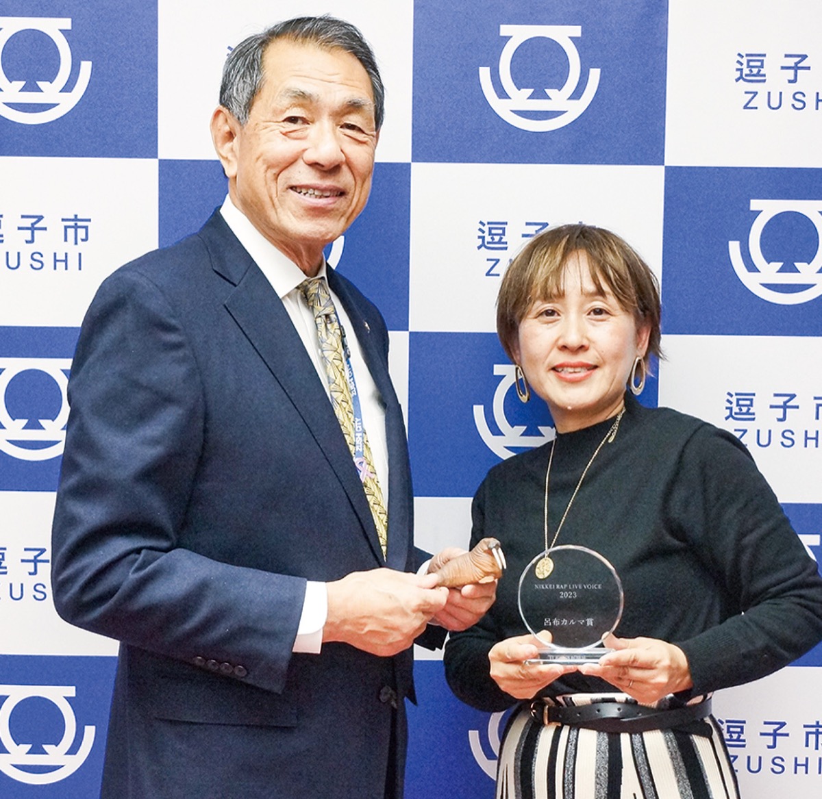 同15日には桐ケ谷覚逗子市長のもとを訪れ、大会での受賞を報告。大会で歌う下崎さんの動画をみた桐ケ谷市長は「ご自分の苦労がそのまま言葉になっているのでよく伝わる」と感心していた。