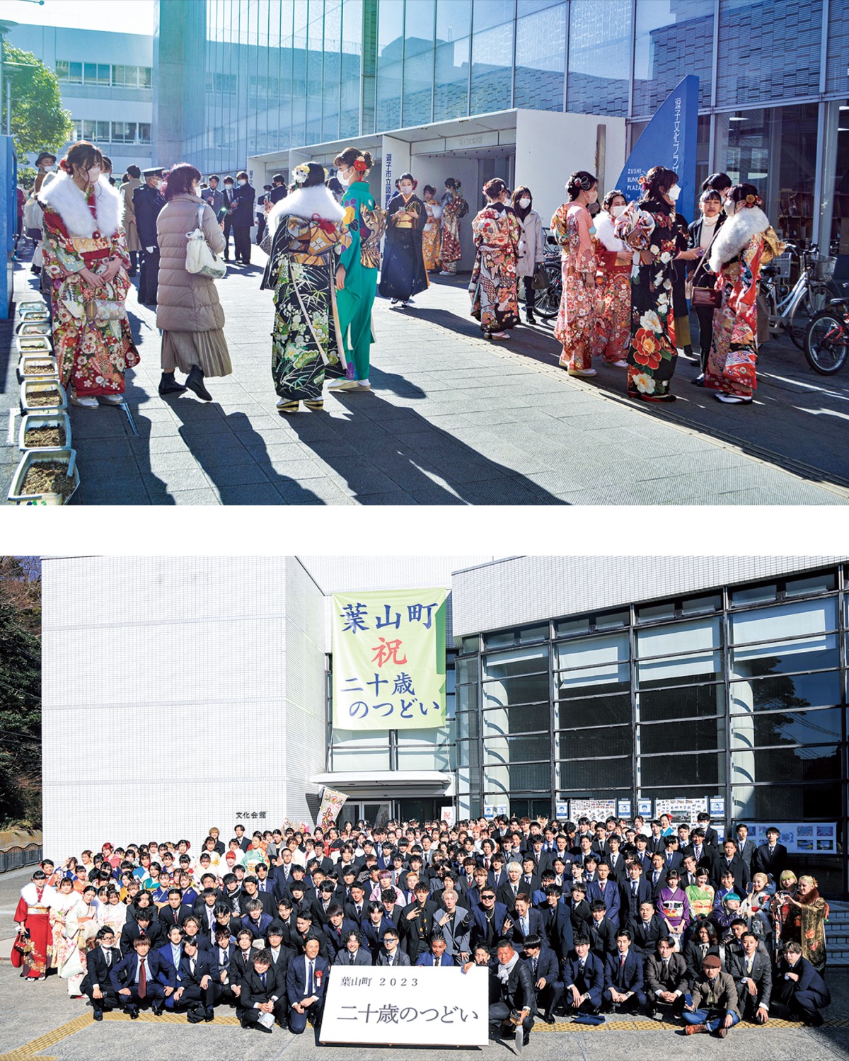 2022年の民法改正で成年年齢が20歳から18歳に引き下げられたが、両市町はこれまで通り、20歳を対象に式典を開催している。
