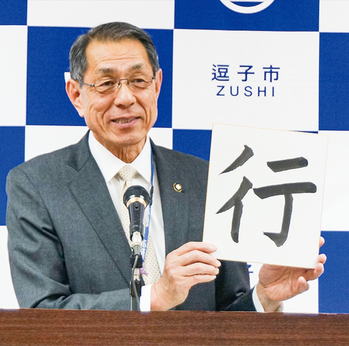 桐ケ谷覚逗子市長は1月5日、年頭記者会見を行い、「2024年は実行、行動する年」とし、「行」を今年の1文字として掲げた。