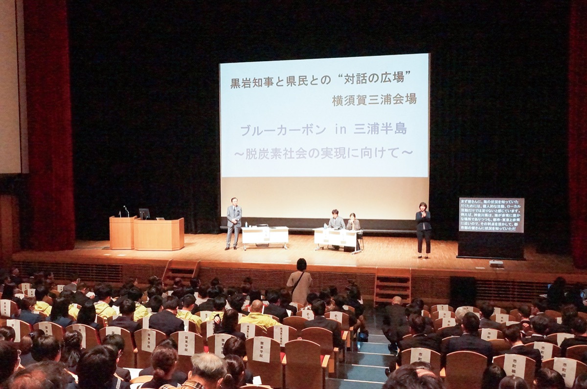 意見交換では逗子市在住の映画監督、長谷川友美さんが発言。「海藻についてのドキュメンタリー映画の撮影を通じ、磯焼けは全国各地で起きている問題だと分かった。個人やローカルな活動では限界がある。県でも再生支援を」と知事に訴えた。