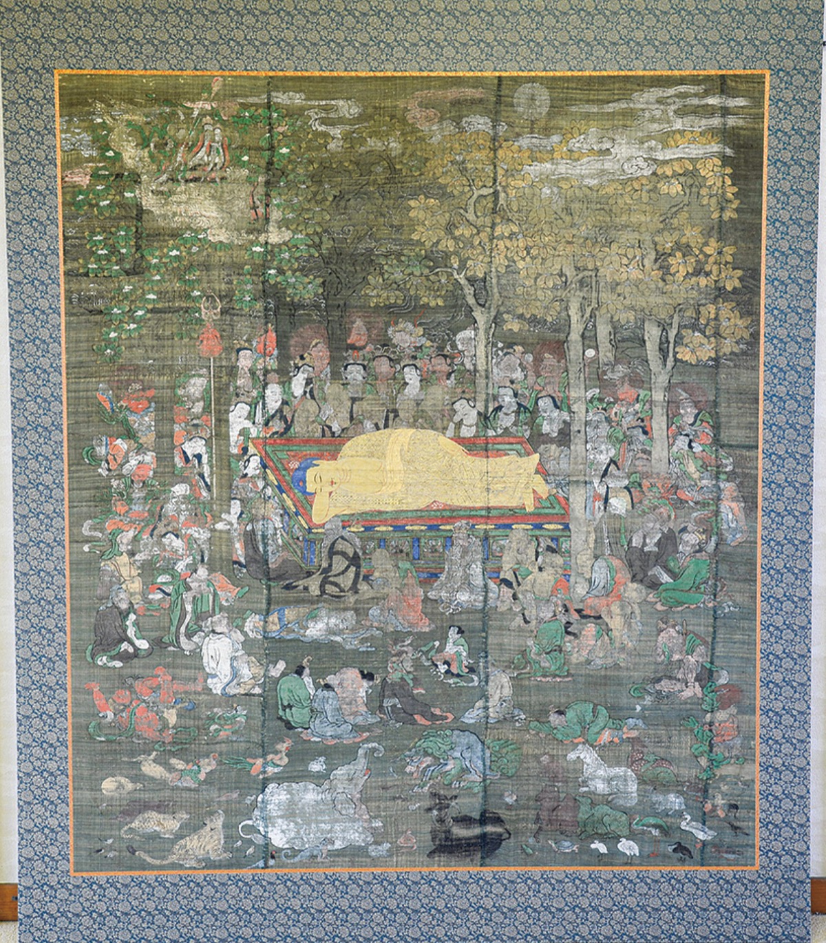 同図は釈迦が死去した日(2月15日)に行われる法要・涅槃会の時にだけ、本堂内に掲げられ見ることができる。神田住職は「文化財を見ることをきっかけに寺を身近に感じてもらえれば」と期待を寄せた。