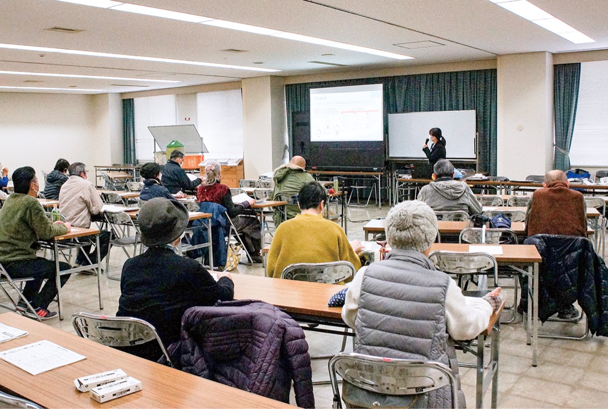 説明会には17人が参加。市資源循環課の職員が、事前に各家庭に配布された生ごみ収集についてまとめた冊子に基づき、「焼却量の削減、ごみ処理経費の縮減、環境負荷の低減」といった目的、分別の仕方、生ごみの堆肥化、生ごみの出し方などについて説明を行った。