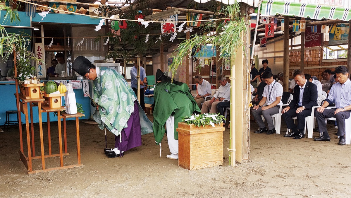 式の後には海水浴場組合、商工会などの主催で海上保全祭を挙行。森戸大明神の神主による安全祈願が行われた。