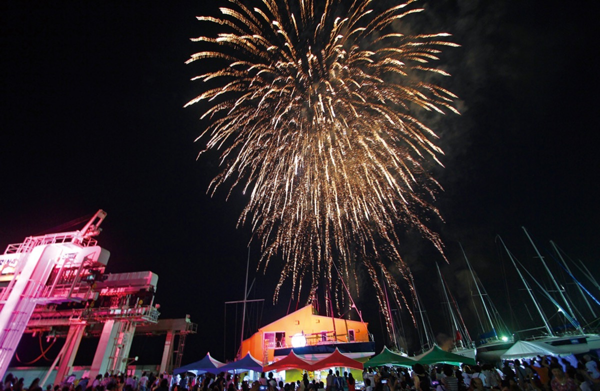 午後7時30分頃からはマリーナ60周年と葉山町制施行100周年を祝う打ち上げ花火も実施。