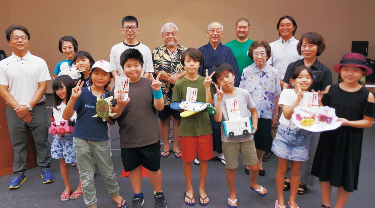 最優秀作品は一色小5年の村井柊(ひいらぎ)さんの「グリーンタートル」。カメの甲羅部分に貼り付けられた海で拾ったシーグラス(浜に打ち上げられたガラス片)が印象的な作品。村井さんは「ウミガメが暮らせるようなきれいな海になってほしい」と作品に込めた思いを語った。家で鶏を飼い、鶏糞を肥料にして畑で野菜を育てるなど、普段からSDGsに取り組んでいるという。