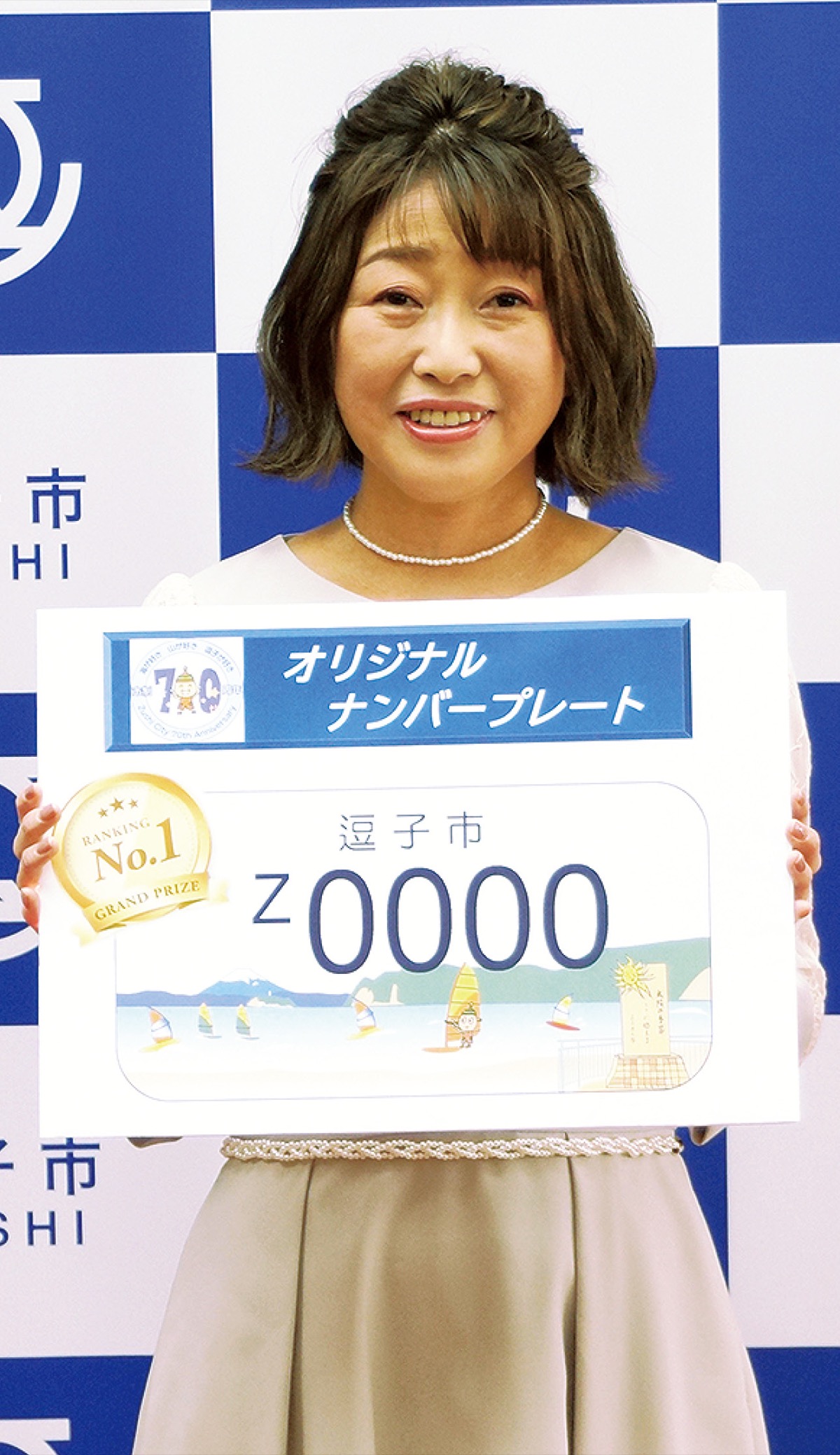 逗子市制70周年記念の原付オリジナルナンバープレートのデザインが決定し、 11月8日に最優秀作品の表彰式が市役所で行われた。