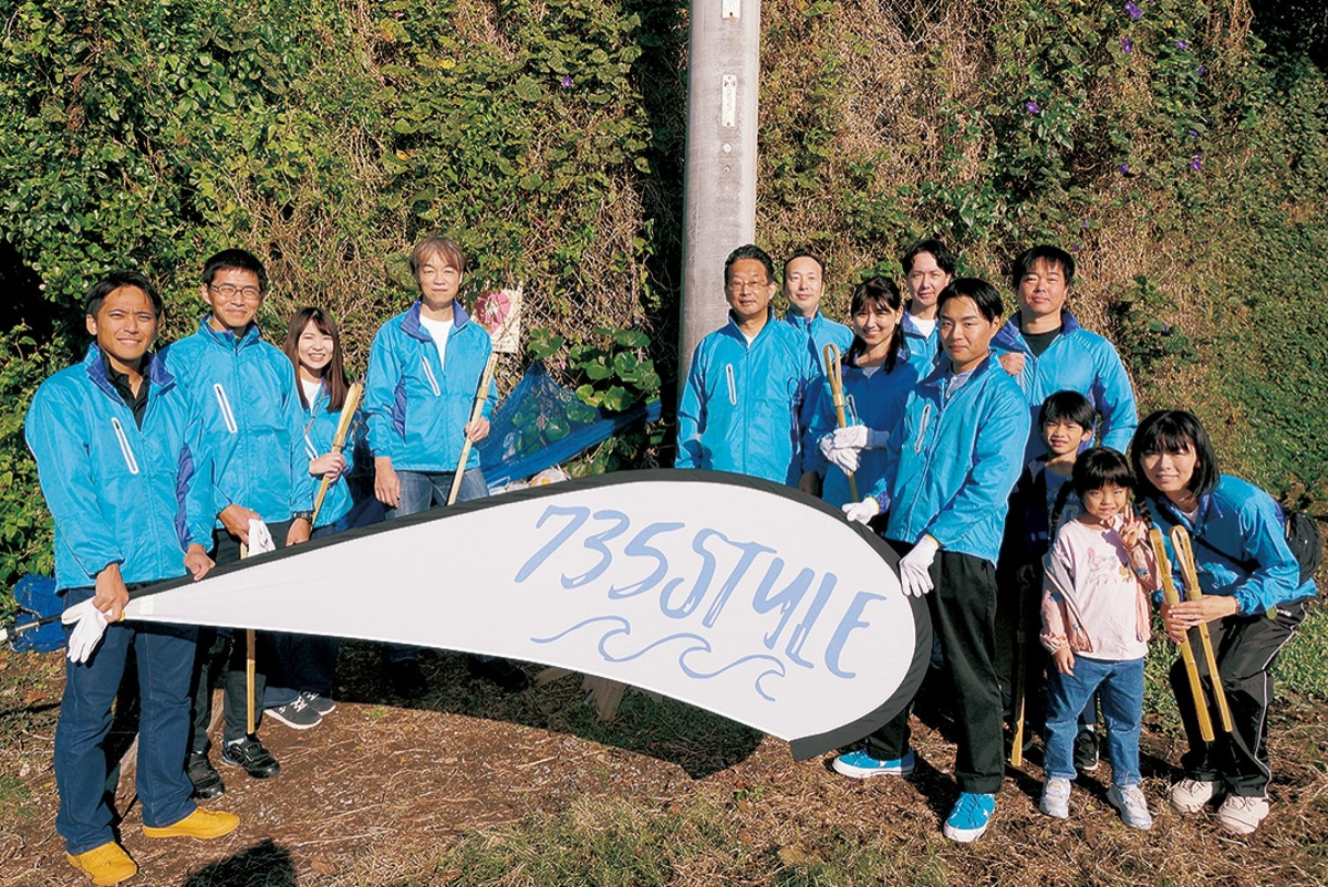 山口社長以下10人の同社社員は、地元サーファーらによるボランティア団体「735(なみこ)style」主催の活動に約100人の市民とともに参加。海岸線道路に落ちているごみを拾ったり、葛が浜近くの河口で流木や大きな魚網の処理をしたりした。