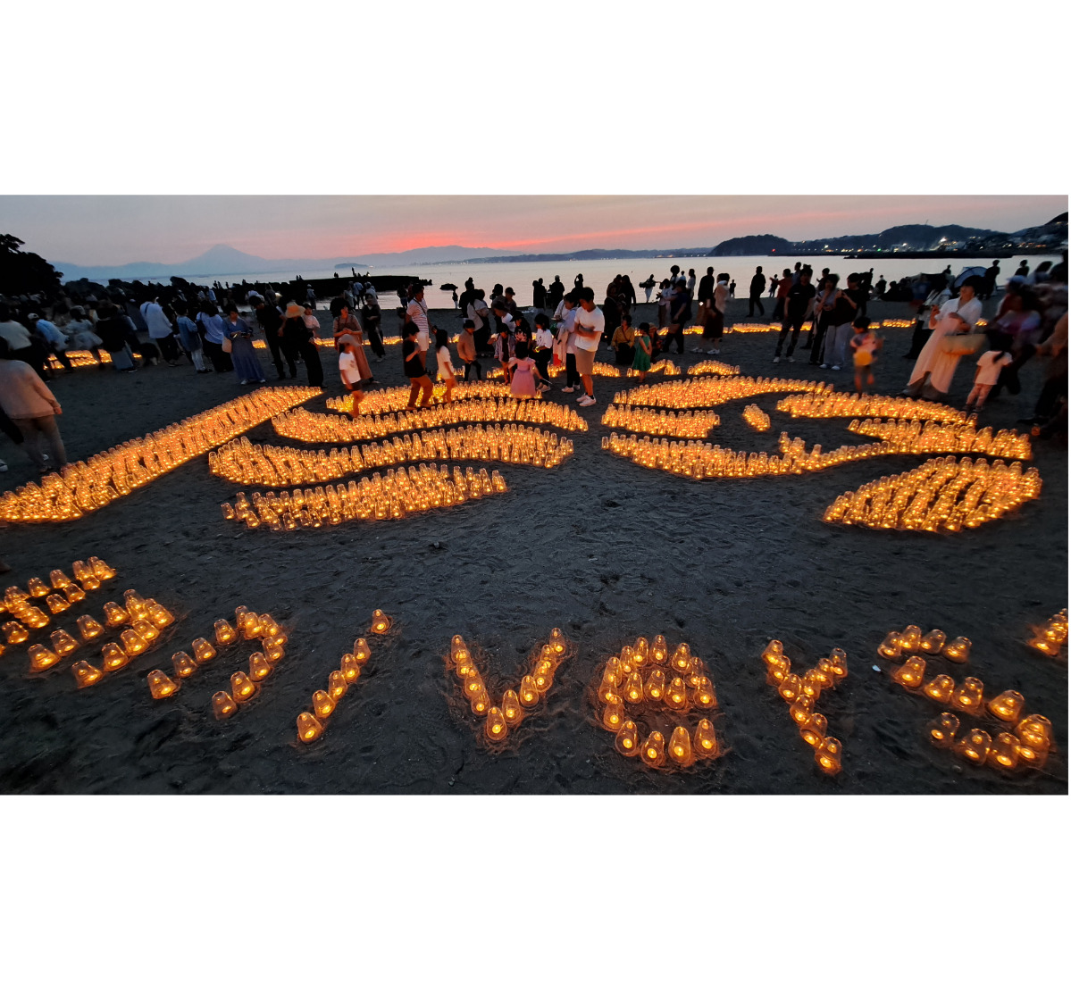 (一社)LOCAL INNOVATION(沼田宏之代表理事)は町制100周年記念事業として5月18日、森戸海岸でビーチキャンドル=写真【6】=を行った。5000本のキャンドルが並び、約1万3000人が砂浜に集まった。