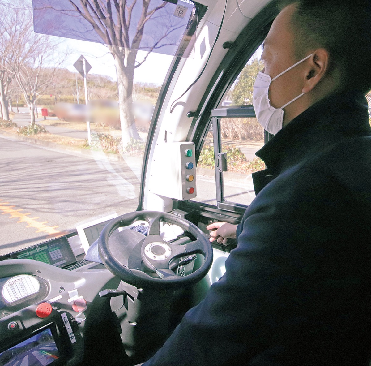 「ファミリーマートM・Y湘南国際村店」を出発点に約2・6Kmの住宅街を7カ所の乗降地を経由しながら、時速10Km前後で運行。前方に障害物があると、運転席側に設置されたボタンを押し回避行動を取っていた。