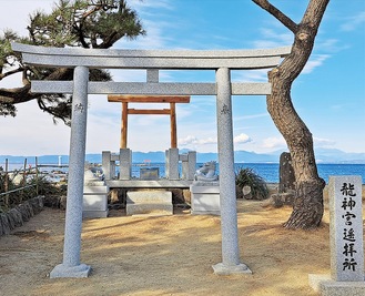 遥拝所の完成は昨年末。同神社禰宜の守屋隆広さんによれば、昨年は辰年ということもあり「(名島の)龍神様にお参りできないか」という声が多くあったという。龍神信仰の始まりは定かではないが古くからあり、海の神で『潮の満ち引き』を司ることから『導きの神様』という考え方がある。名島にはかつて桟橋があり10年ほど前までは渡し舟も出ていたが、今はそれもなくなり、竜神宮に行けないため、参拝できる場所を造営することにした。
