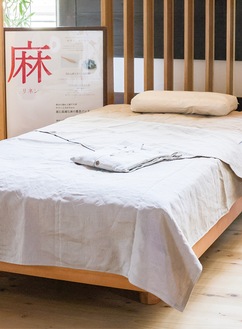 「麻素材は吸湿・速乾性に優れ、通気性もよく肌触りがサラッと快適で蒸れにくいため、この季節の寝具としておすすめです」と内田店長。