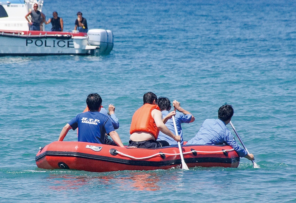 参加した署員の一人は「着衣のままだと体にまとわりついて、腕を動かすだけでも水の重さに引っ張られてしまった。ボートは左右の声掛けのタイミングが合わないと真っすぐ進まず難しかった。浜まで人を運ぶときにはうまく波の力を使うことができた」など訓練の感想を語った。