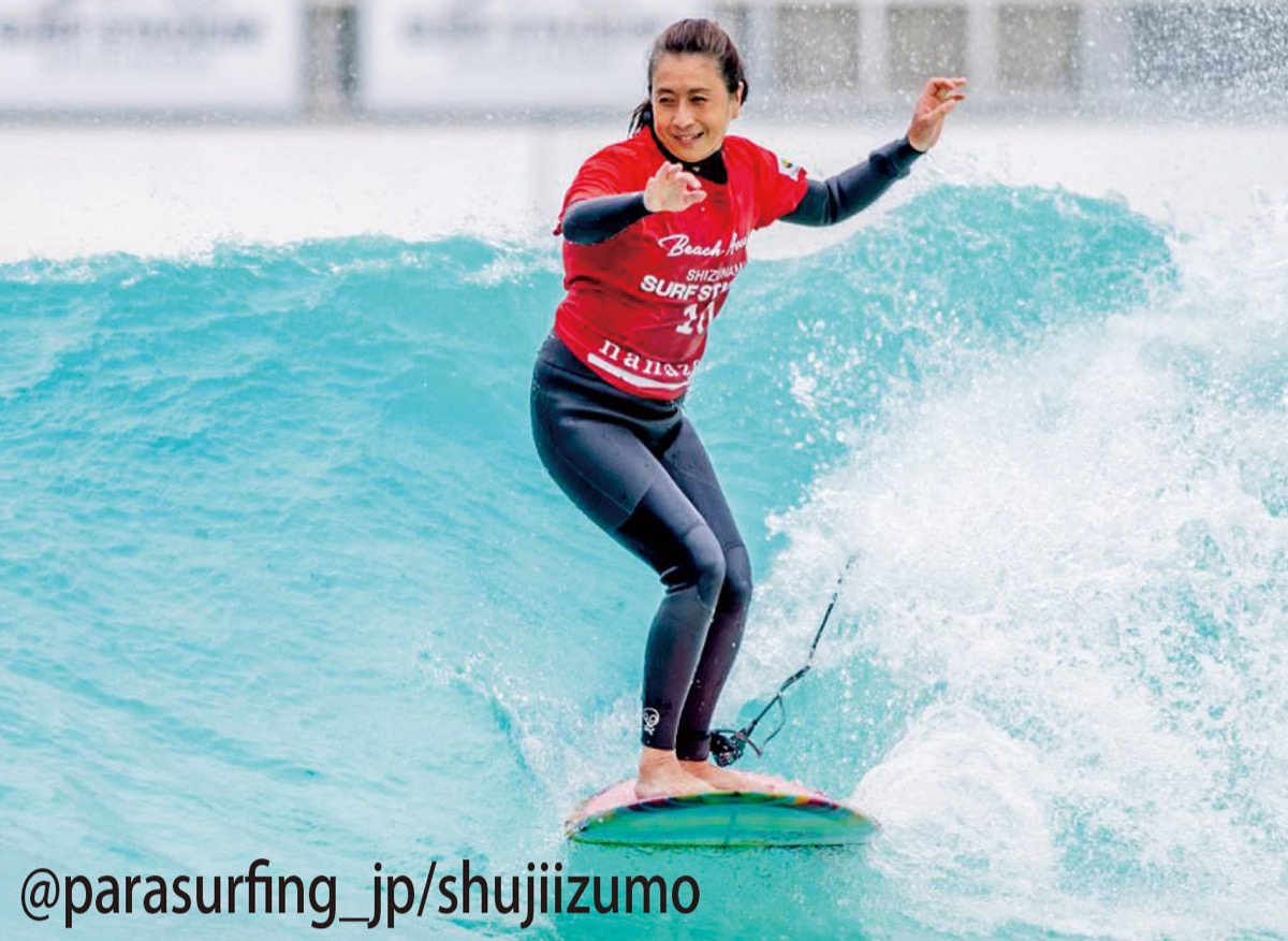 趣味だったサーフィンも視野が狭くなるにつれて、他のサーファーの邪魔になることが増え、いつしか海に入らなくなっていた。そうした中で昨年、あるボランティアの活動でパラサーフィンの大会の手伝いをした際に、身体障害だけではなく、視覚障害のクラスもあることを知り、挑戦しようと決意。夫の協力も得て練習を再開し、今年5月に静岡県牧之原市で行われた「第4回静波パラサーフィンJAPAN OPEN」に出場し優勝。続いて全日本選手権でも勝利を収めた。