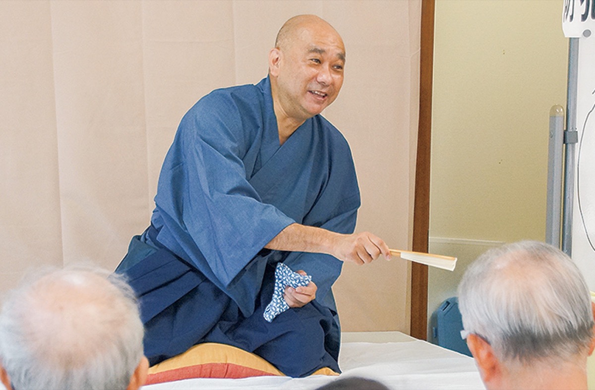 逗子警察署の甲斐義博生活安全課長は7月24日、ずし3丁目防災の会からの防犯対策講話の依頼を受け、落語で特殊詐欺への注意を呼び掛けた。会場には子ども連れの家族から年配者まで約20人が集まった。