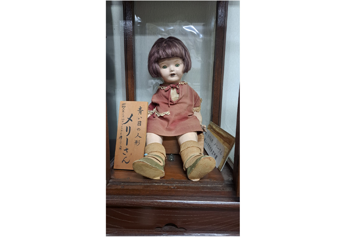 青い目をしたこの人形は、アメリカから日本各地の小学校に約1万2700体贈られた内の一体だ。当時、アメリカでは「排日移民法」が作られ、両国の関係性が悪化していた。日本に長く住んだことのあるアメリカ人宣教師のシドニー・ルイス・ギューリック氏は、子どもの頃からお互いの文化を理解することが、両国の友好につながると考え、「世界の平和は子どもから」をスローガンに日本のひな祭りに合わせ、人形の寄贈を全米に呼びかけた。この呼びかけに応え集められた人形は「友情人形」と呼ばれ、日本からはお礼として「市松人形」が58体贈られた。