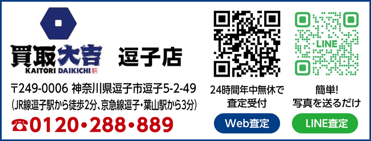 そんな時は、悩みに真摯に向き合い、どんな商品も一点ずつ丁寧に査定を行う「買取大吉 逗子店」に相談してみては。