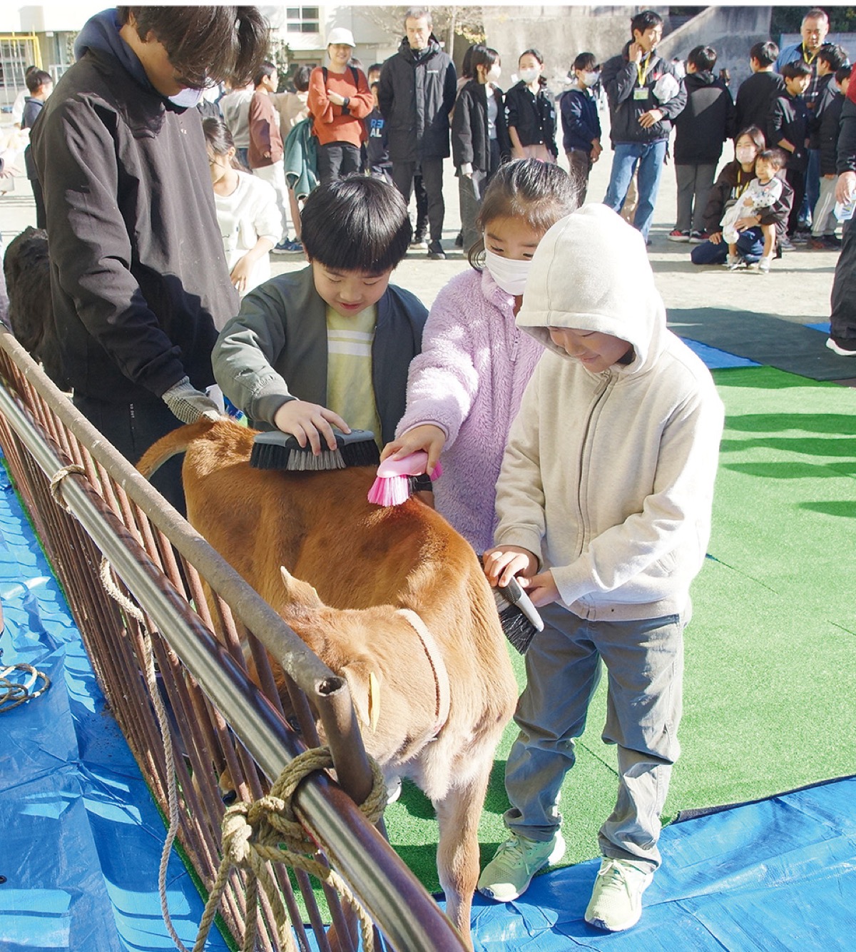 逗子市立小坪小学校(池上慎吾校長)で12月10日、乳牛や子牛との触れ合い体験を通じ、動物への関心を高め、命の尊さを伝えるとともに、酪農への理解を深めることを目的に「神奈川県わくわくモーモースクール」が開かれた。主催は県内の酪農家、乳業者、行政、関係団体、学校関係者などでつくる神奈川県酪農教育ファーム推進委員会。