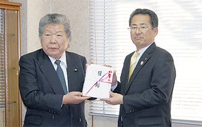 海老根市長は感謝の意を述べるとともに、櫻井理事長に対して感謝状を贈った。