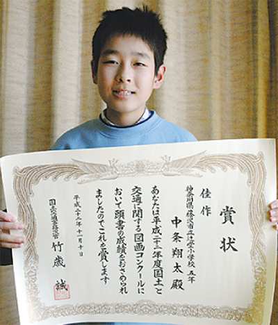 平成22年度「国土と交通に関する図画コンクール」の審査結果がこのほど発表され、辻堂小学校の中条翔太君(5年)の作品が佳作に選ばれた。