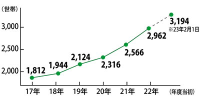 藤沢市の生活保護世帯数は受給が開始された2004年度から最も多く、3000世帯を突破。前年2月1日の2893世帯(4163人)を301件(416人)上回った。人口41万人を超える藤沢市の約1%が生活保護を受けていることになる。