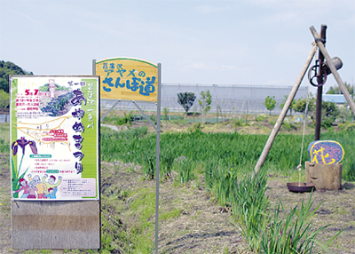 そんな中、再び地名に合った花園を目指そうと、御所見くらし市民会議らが8年ほど前から植栽を開始。現在は、一色川沿いの遊歩道に、300m以上続くアヤメを楽しむことができるようになった。
