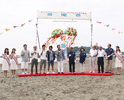 江の島海水浴場の海開きが1日、片瀬海岸東浜海水浴場で開催された。