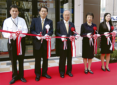 開店前のセレモニーには、(株)ダイエーの桑原道夫代表取締役社長、同店の土地所有者である(株)ミルスペースの田中正明代表取締役社長らが出席、テープカットを行った。