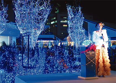 湘南最大級の大型商業施設「テラスモール湘南」では、12月25日(日)まで「湘南1st Christmas」と題し、青を中心に、湘南の美しい空をテーマとしたクリスマスイルミネーションを開催している。11月23日には点灯式が行われ、シンガーソングライターのMINMIさんがゲストとして登場、集まった約3000人の観客を魅了した。