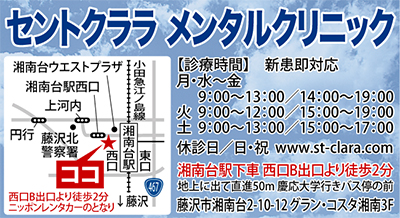 湘南台駅西口徒歩2分の立地に「セントクララメンタルクリニック」がこのほど開院した。
