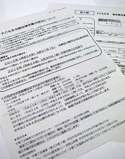 認定請求書が3月31日までに受理された場合は、2011年10月分までさかのぼって支給されるが、4月1日以降に受理された場合は、昨年10月分から受理月分までは支給されない。 同課では「3月31日までに提出してもらわないと、さかのぼって支給できない。また、書類に不備があった場合、ギリギリだと間に合わなくなってしまうので、早めの提出を」と呼びかけている。