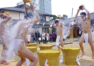 当日は神奈川県内の僧侶6人が参加し、水行式と特別加持祈祷を実施。水行は気温約3度の雪がちらつく寒空の中行われたが、僧侶らは表情を変えることなく冷水を浴び続けていた。