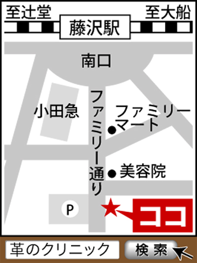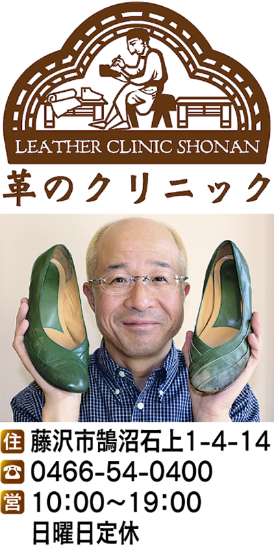 藤沢駅南口ファミリー通りにある「革のクリニック」。4年前にオープンした革修理専門店で、革のことなら何でも親身になって相談にのってくれると評判だ。