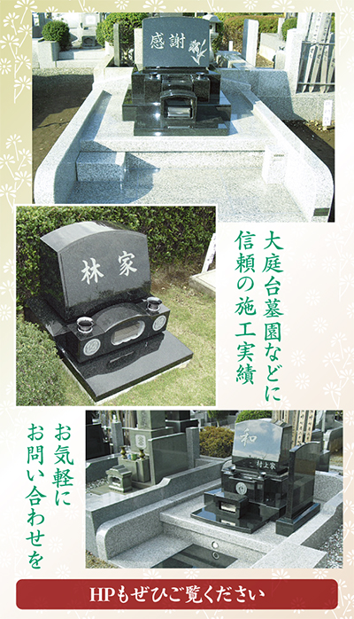 そんな悩みを持った人に足を運んでもらいたいのが、施工技術の確かさはもちろん、「お客様の想い」を一番に考えてくれるフジミ石材だ。大庭台墓園などでの施工事例も多く「丁寧施工」で地域に信頼される同店。植木社長は「故人に対する想いは一人ひとり違い、理想のお墓も個々で違います。お客様の要望を叶え、理想のお墓を一緒に作っていきたい」と話す。