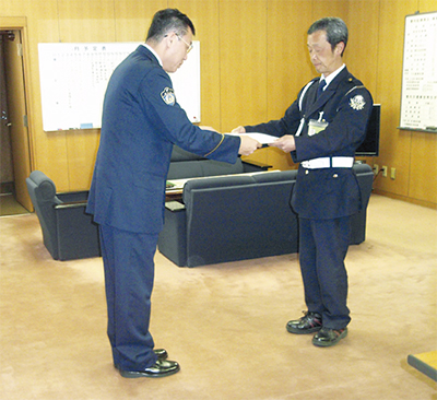 藤沢警察署(稲葉敏幸署長)は10日、窃盗被疑者の現行犯人逮捕に貢献したとして、国際警備保障株式会社の田中稔さんに感謝状を贈った。