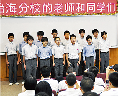 怡海分校の生徒らが、練習してきた早口言葉で沸かせると、藤嶺学園の生徒も、能楽を披露。日本の古典芸能を前に、デジカメやケータイで写真を撮る生徒の姿が見られた。その後、茶道と剣道の体験授業が行われ、交流を深めた。