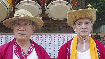 兄弟の2人は幼いころからこの祭りに参加しており、現在は毎年の例大祭に向けて若い人たちに太鼓や笛の指導を行っている。