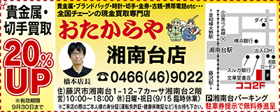 夏休み、遊びすぎちゃって…という人!家に眠るブランドバッグや貴金属、金券でお小遣い稼ぎしちゃおう!高価買取で定評の高い「おたからや湘南台店」がオススメ!高騰中の金はもちろん、ヴィトンのバッグ等は高価買取の可能性大◎さらに、壊れた携帯電話や洋食器、ビール券やテレホンカードも買取ってくれる。