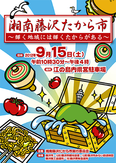 藤沢に眠る「たからの原石」を発掘し付加価値をつけ、「新たな地域のたから」を生み出す場として9月15日(土)、「湘南藤沢たから市〜輝く地域には輝くたからがある〜」が開催される(主催/2012同市実行委員会・杵淵業明実行委員長)。